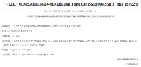 日前,經深圳市地鐵集團有限公司官網中標公示通過,公司軌道交通院作為聯合體牽頭方參投的“‘十四五’軌道交通樞紐綜合開發項目規劃設計研究及核心區建筑概念設計(四)”喜獲中標,中標金額人民幣1700余萬元。