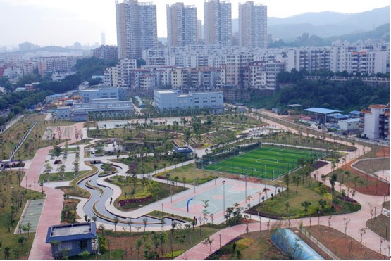 布吉污水處理廠主體工藝采用A2/O活性污泥-生物膜共池工藝(HYBAS),保證了生化處理的穩定,同時創新的采用了雙層沉淀池用于污水處理二沉池,節約用地提高沉淀效率。其上蓋布吉文化公園,現已成為布吉重要綠化休閑場所,各類園林綠化經過四年的生長,與布吉河沿河景觀帶渾然一體。