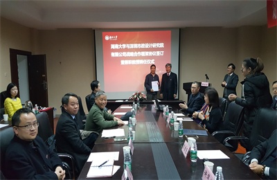 2016年11月29日下午,我司與湖南大學舉行戰略合作協議簽訂暨兼職教授受聘儀式。我司陳宜言董事長,監事會宋榮亮主席,黨委副書記、紀委書記郭明,副總經理許華林及相關部門負責人;湖南大學校長段獻忠,中國工程院院士陳政清,湖南大學科學技術研究院科技合作辦公室主任粟石軍,土木工程學院書記趙明華,院長陳仁朋等校院領導、教授、老師學生代表出席儀式。儀式由陳仁朋院長主持。