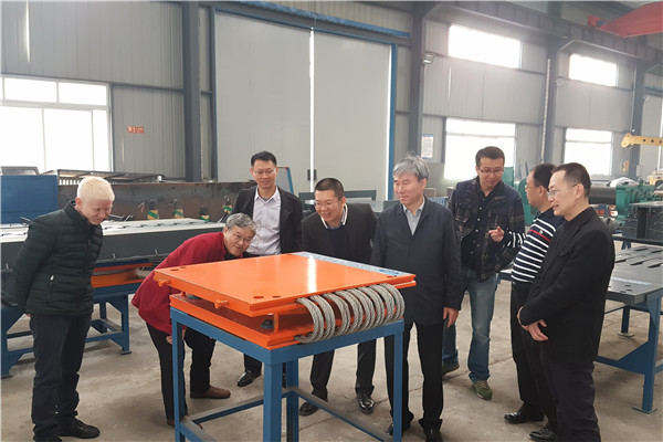 陳宜言大師一行首先在濟通科技伍廷貴董事長、伍大成總經(jīng)理、趙鵬賢副總經(jīng)理陪同下,參觀了濟通科技技術(shù)中心、制造基地、質(zhì)量中心,現(xiàn)場了解了其研發(fā)的市政減噪伸縮縫、拉索防落梁支座等創(chuàng)新成果和生產(chǎn)情況并在會議室座談。