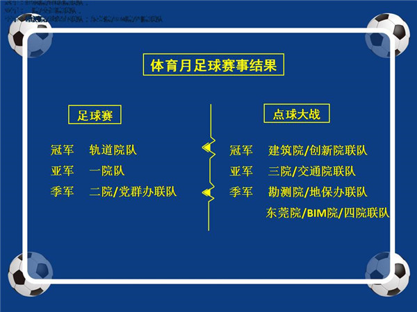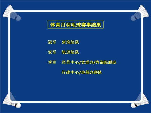 本次體育月自11月1日開幕以來,歷時一個月,設置了足球、籃球、羽毛球、乒乓球、攝影等比賽項目,各部門積極參與,反響空前。