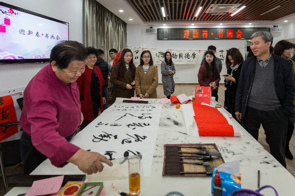 “丹青吐彩,翰墨飄香”。1月28日下午,公司“迎新春·書畫會(huì)”活動(dòng)在市政設(shè)計(jì)大廈一樓報(bào)告廳舉辦,著名書畫家魏治平、鄒國榮、丁廣瑋、徐怡受邀前來,公司黨委書記、董事長陳宜言及黨委副書記、紀(jì)委書記、工會(huì)主席郭明出席了此次活動(dòng)。本次活動(dòng)吸引來自各部門共80余名青年員工參加。