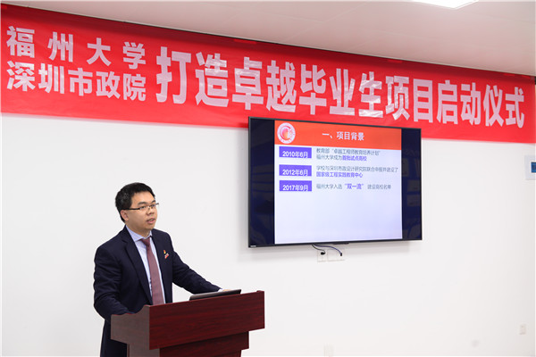 張星副校長對本次參會的深圳市政院領(lǐng)導(dǎo)及企業(yè)導(dǎo)師表示感謝。他指出,校企合作打造卓越畢業(yè)生對校企雙方實(shí)現(xiàn)人才培養(yǎng)計(jì)劃具有重要意義。工科教育最重要的是實(shí)踐教育,打造卓越畢業(yè)生項(xiàng)目是“新工科”中很好的一個實(shí)踐。學(xué)生要珍惜這次機(jī)會,努力在畢業(yè)設(shè)計(jì)中取得優(yōu)異的成績,并預(yù)祝項(xiàng)目取得圓滿成功。