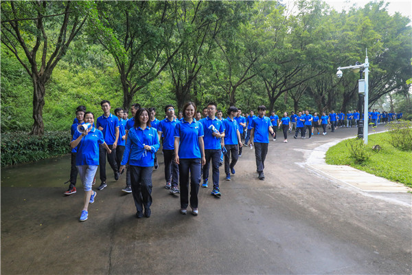 當天下午,300余名青年員工統一著裝,前往筆架山公園開展健走活動。健走途中,對植物有獨到研究的同事們發揮專業之長,沿途講授植物百科,并帶領大家認識了形態各異的植物:有公園入口迎賓的高大美麗的異木棉、具有150年歷史的古老滄桑的魚木樹、頗有名氣的中國無憂樹、一日落花的印度紫檀、稀有的酸豆樹等等,特別對設計師們應該了解的園林景觀知識點進行普及,加深了大家對設計理念的思考。迎著秋風習習,踏著落葉片片,在自然之間的我們不僅舒緩了工作壓力,同時發現植物之美,更是以行走的力量踐行著綠色健康的生活方式,展現出市政院人青春活力的昂揚面貌。