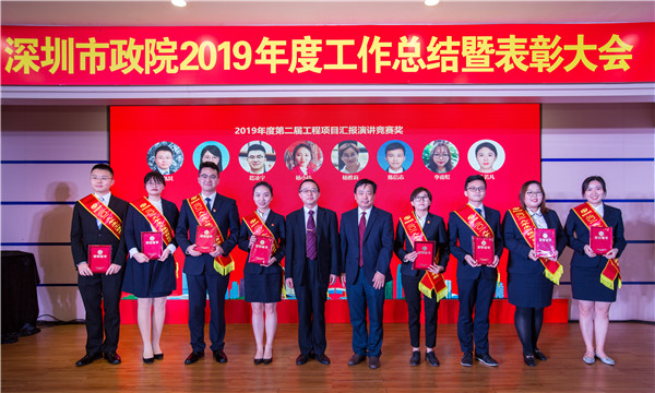 大會表彰了2019年度先進集體、表揚集體、優秀管理者、先進個人等8個獎項,集團領導、相關單位負責人及市政院領導為獲獎集體和個人頒獎并合影留念。飽含深情、慷慨激昂的頒獎詞更是催人奮進。
