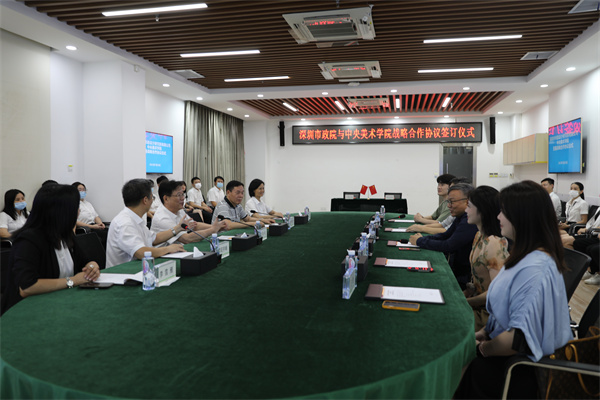 2021年7月16日,深圳市政院與中央美術學院(以下簡稱“中央美院”)在深圳市政設計大廈技術交流中心舉行戰略合作協議簽約儀式,深圳市政院黨委副書記、總經理劉勁松,中央美院(中法)藝術與設計管理學院副院長黃建成分別代表雙方致辭并簽署戰略合作協議。