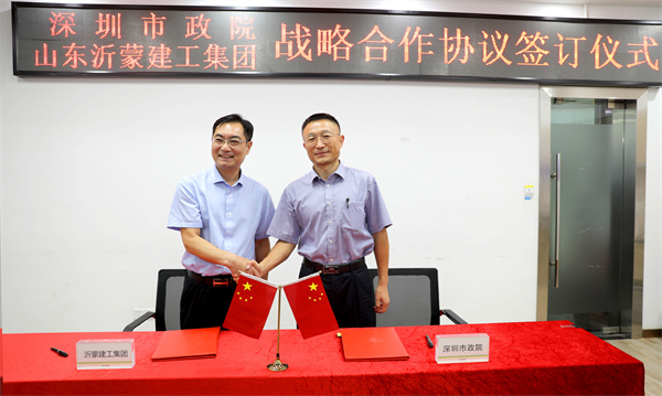 10月12日下午,深圳市政院與山東沂蒙建工集團有限公司在深圳簽訂戰略合作協議。深圳市政院黨委書記、董事長劉樹亞,山東沂蒙建工集團黨委書記、董事長邵明志,臨沂市政府副秘書長、臨沂市第三批年輕干部深圳研學實踐隊臨時黨支部書記、總領隊杜以方出席簽約儀式。