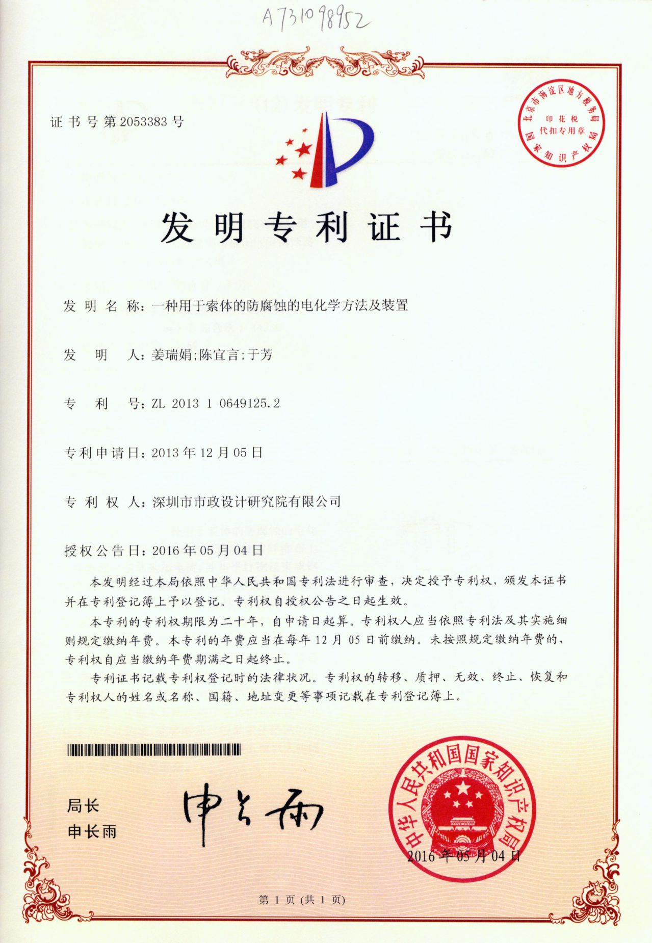 一種用于索體的防腐蝕的電化學(xué)方法及裝置