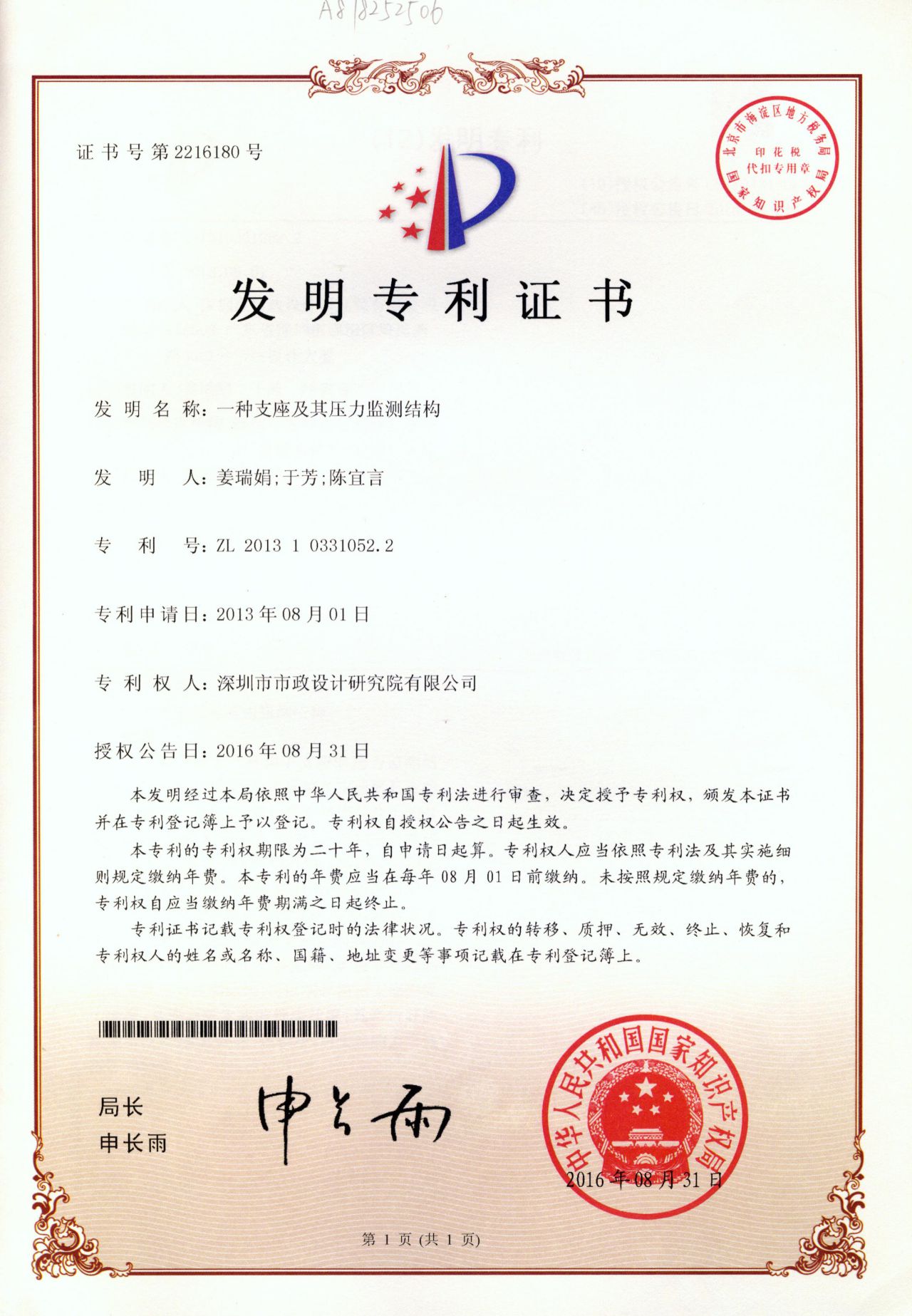 一種支座及其壓力監(jiān)測結(jié)構(gòu)
